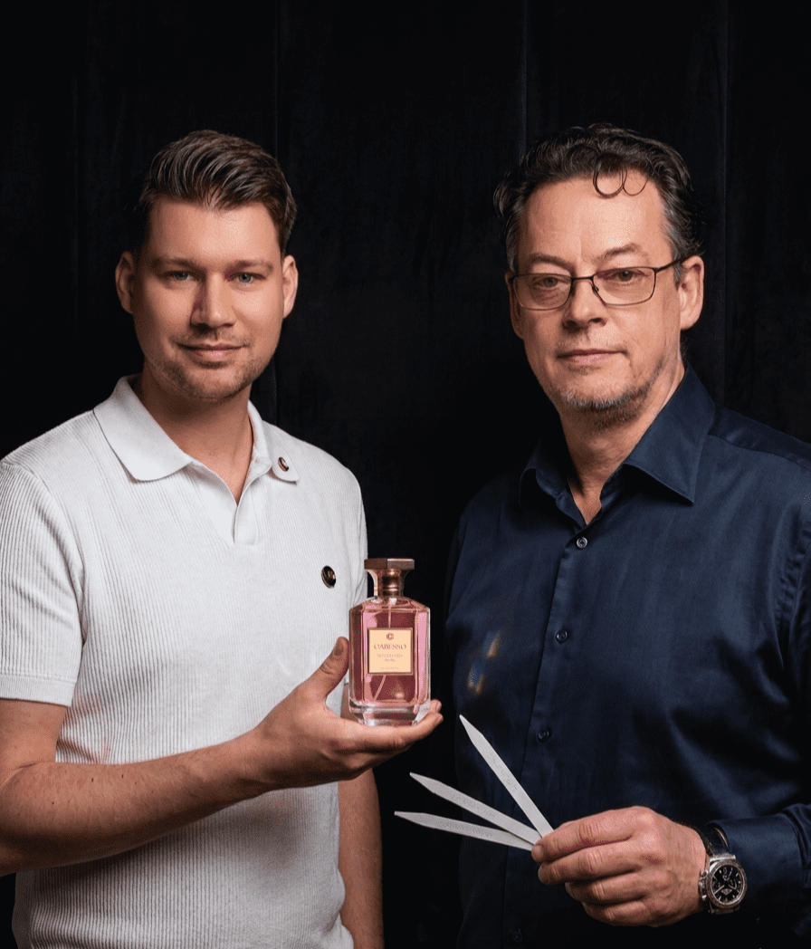 Wij zijn Jasper en Fabijan, en we zijn Cabesso gestart om de leegte te vullen tussen ‘lekker ruiken’ en ‘onvergetelijk zijn’. Laten we eerlijk zijn: de meeste geuren zijn nogal braaf, terwijl je op een date of avondje uit juist die onvergetelijke indruk wilt maken in plaats van slechts een gezicht in de massa te zijn. We wilden een parfum maken dat niet alleen lekker ruikt, maar dat echt iets losmaakt bij het andere geslacht.
